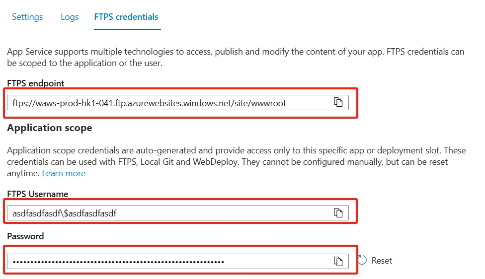 使用FTPs部署Azure Web App